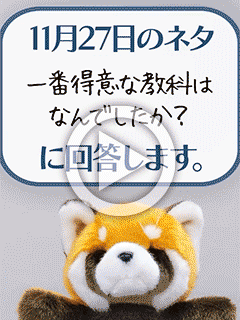 【11月27日のネタ回答】 一番得意な教科はなんでしたか? スタッフ 2025.11.27 ↑↑動画をご覧ください↑↑ 11月27日のネタ 一番得意な教科はなんでしたか? 【部谷主任回答】 ぼくの得意教科は… 〇〇です! 以外と思われるかもしれませんが… では…動画をご覧ください! …どうぞ!
